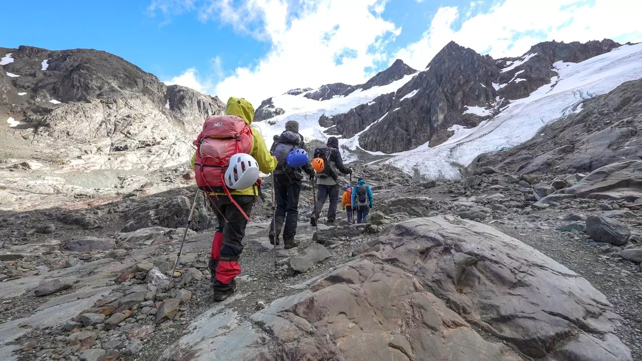 Otra opción más inmersiva es el tour de ice trekking en el Glaciar Martial. Equipado con crampones, bastones y casco, vas a caminar sobre el hielo y explorar cuevas, sumideros y formaciones heladas guiado por expertos. Tiene una duración total de unas 8 horas.