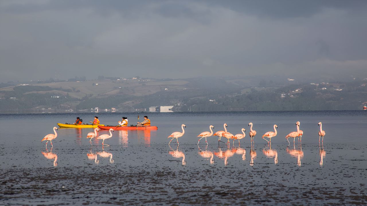 Auf der Insel angekommen, fahren wir nach Chacao, bekannt für seine charmanten Lärchenholzgebäude und seine zum Nationaldenkmal erklärte Kirche. Wir fahren weiter entlang einer malerischen Küstenstraße, bis wir die Strandresorts Caulin und Lacuy erreichen, die für ihre frischen Austern und die vielfältige Meeresfauna bekannt sind, die Sie in ihrem natürlichen Lebensraum beobachten können.