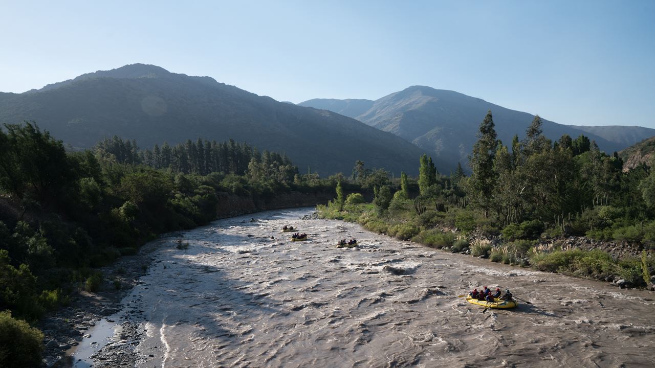 Wir durchqueren das Gebiet des Cajón del Maipo, erreichen den gleichnamigen Fluss und beginnen das Abenteuer: 14 Kilometer Adrenalin pur.