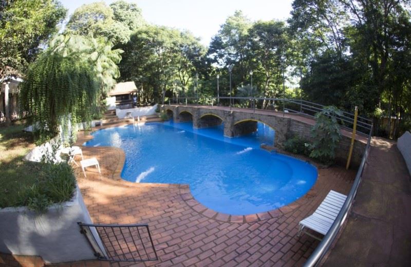 For relaxation and leisure, the hotel`s outdoor swimming pool offers a refreshing respite, complemented by lounge chairs scattered around for sunbathing. While staying at the hotel, guests also have the opportunity to explore the jungle trails, engage with local wildlife, or visit nearby attractions such as the Parque Nacional Iguazu.