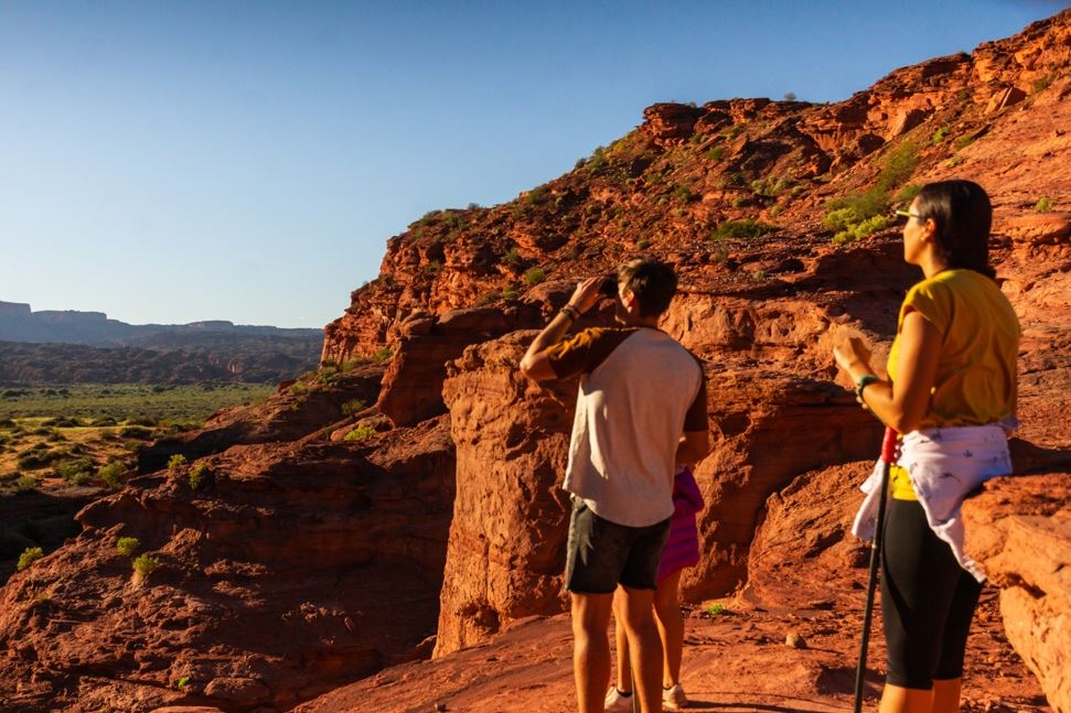 Luego de ver los principales atractivos en un vehículo totalmente equipado, vas a emprender un trekking ascendente de 2,3 kilómetros hacia Los Balcones de Talampaya, un mirador natural a 1600 metros sobre el nivel del mar que te ofrece vistas panorámicas del Cañón de Talampaya.