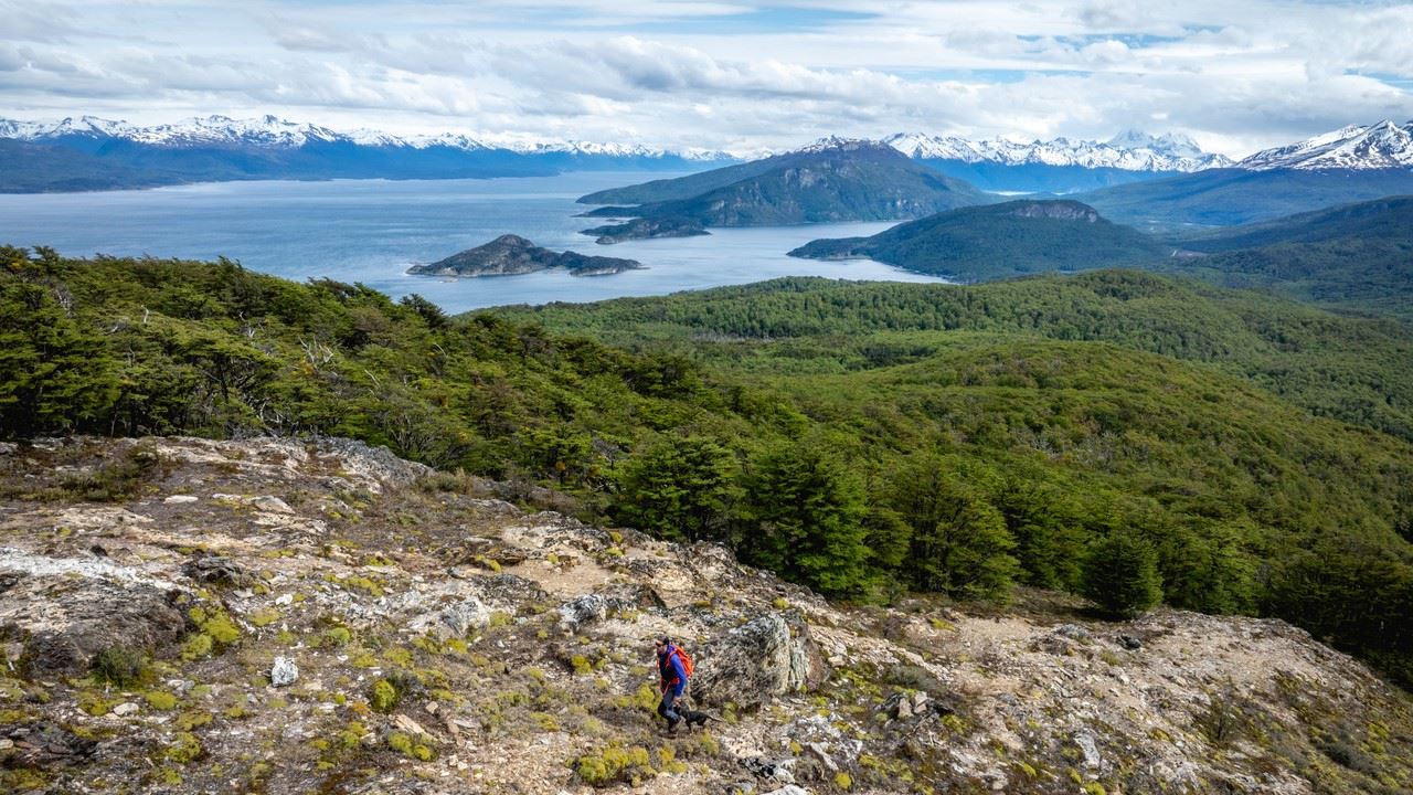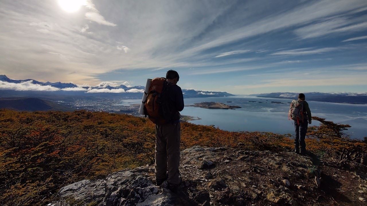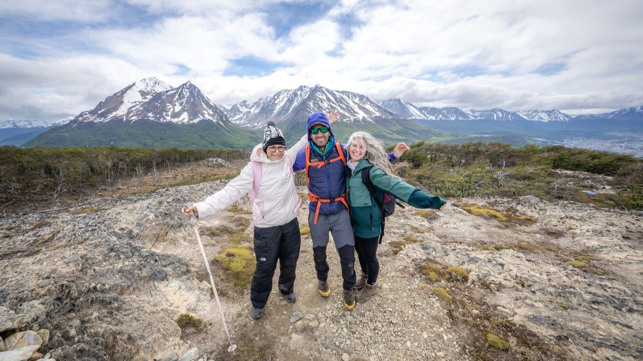 Al alcanzar la cumbre, el esfuerzo se ve recompensado con una vista inigualable del Canal Beagle, las montañas de la Cordillera de los Andes y otros icónicos paisajes de Tierra del Fuego. Aquí, disfrutamos de un delicioso box lunch mientras descansamos y apreciamos la belleza que nos rodea.