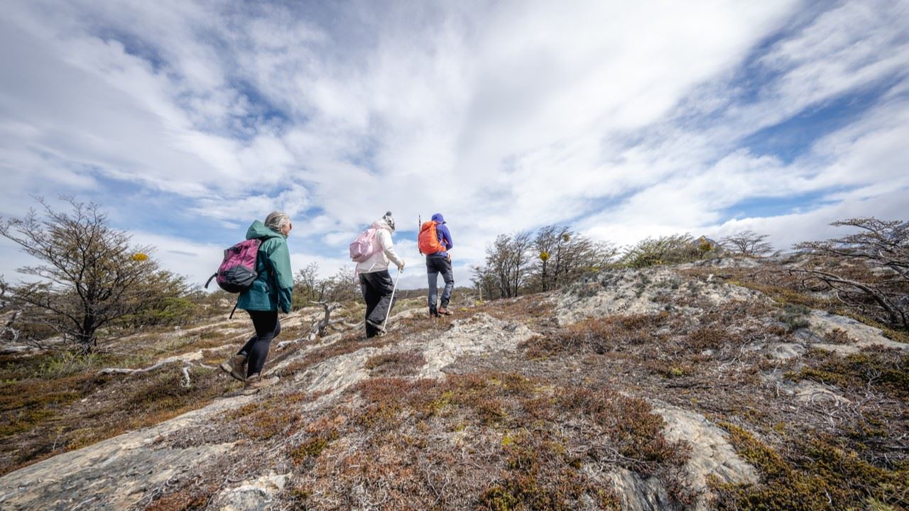 Después de almorzar, comenzamos el descenso. Retomamos el camino, regresando al punto de partida y finalmente al vehículo que nos llevará de vuelta a Ushuaia.
