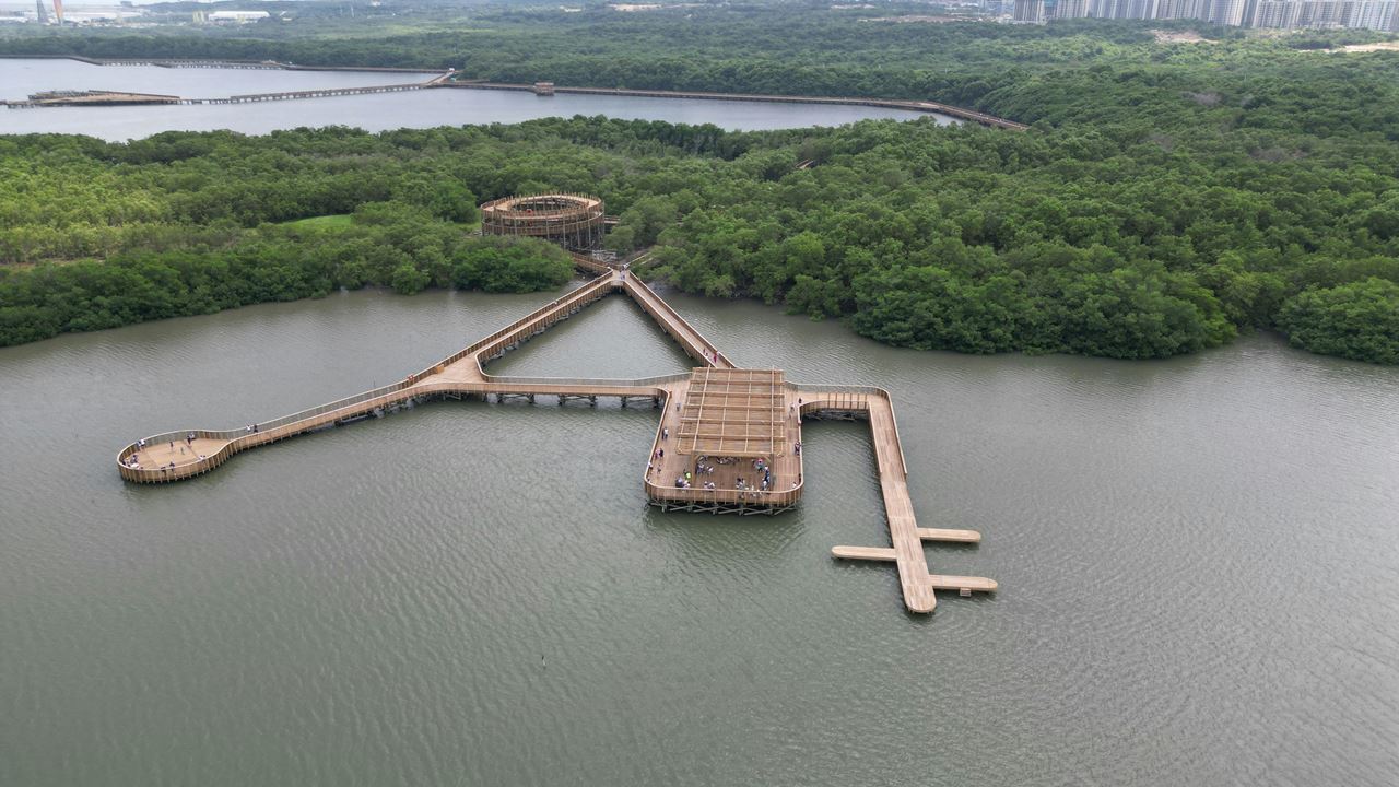 El recorrido continuará a pie por senderos elevados y caminos naturales, diseñados para minimizar el impacto sobre el ecosistema. Avanzarás entre manglares, espejos de agua y zonas de transición costera, donde será posible observar aves residentes y migratorias como garzas blancas y morenas, ibis, cormoranes, pelícanos, martín pescador, playeros y gaviotas, además de cangrejos violinistas y otras especies propias de los humedales costeros.