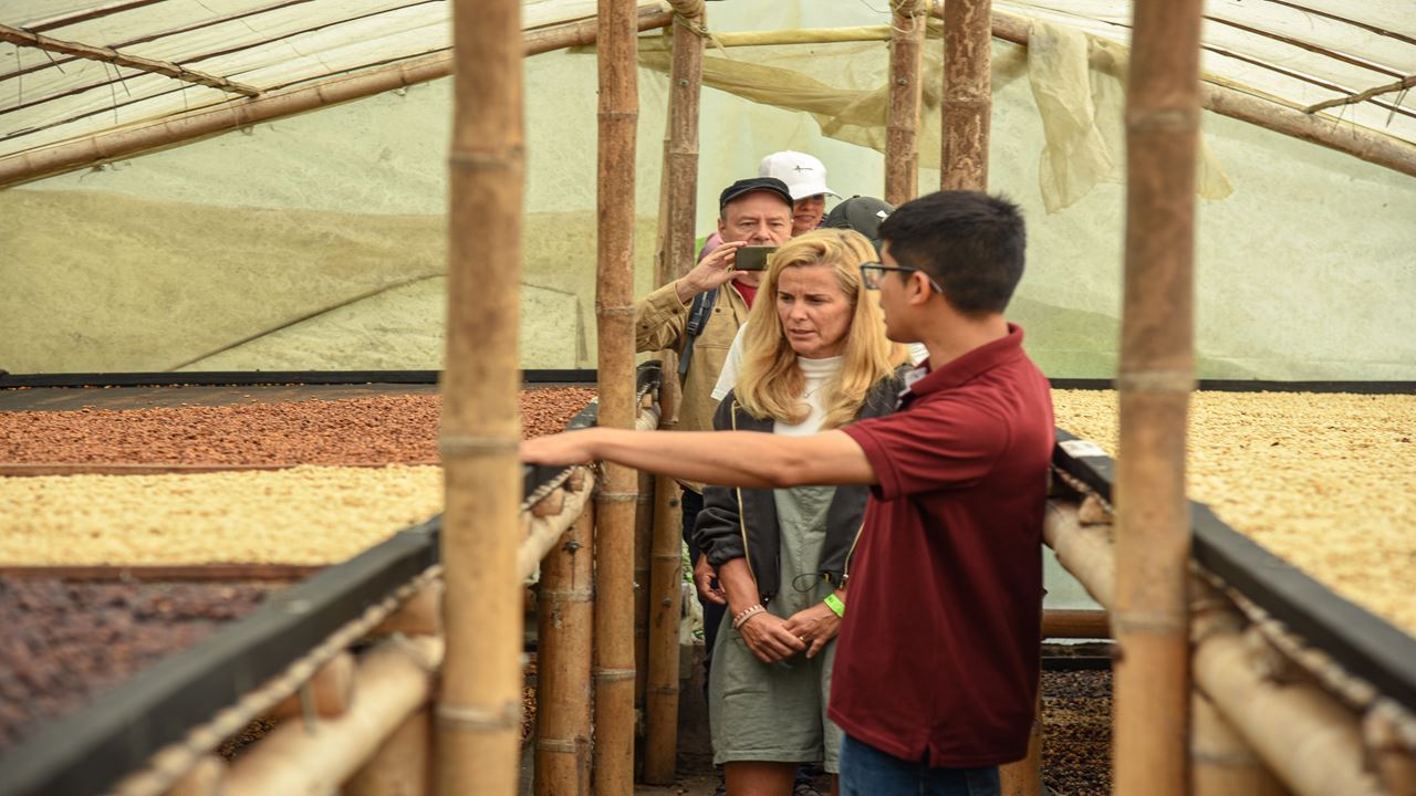 Ao chegar, o guia bilíngue (espanhol/inglês) inicia a visita guiada às plantações de café cultivado à sombra , um sistema que protege a biodiversidade da fazenda e promove o desenvolvimento lento dos grãos, essencial para a produção de café de alta qualidade. Você aprenderá a identificar as variedades Tabi e Castillo que crescem nessas encostas, compreenderá todo o seu ciclo de vida e, durante a época da colheita, terá a oportunidade de colher café com as próprias mãos.